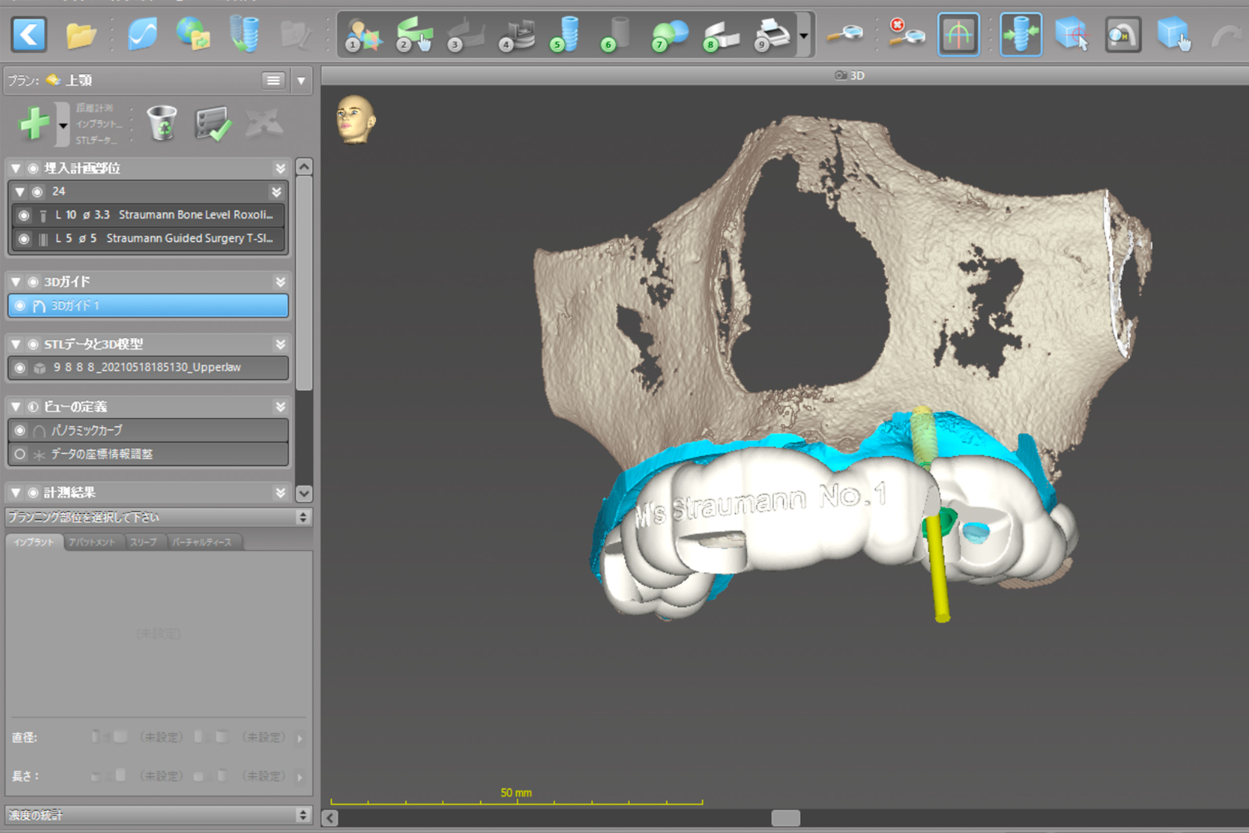 得られた資料から実際にインプラントを入れられるかのシミュレーションをデジタルデータ上で行い、安全かつ的確なインプラント治療をできるようにします。